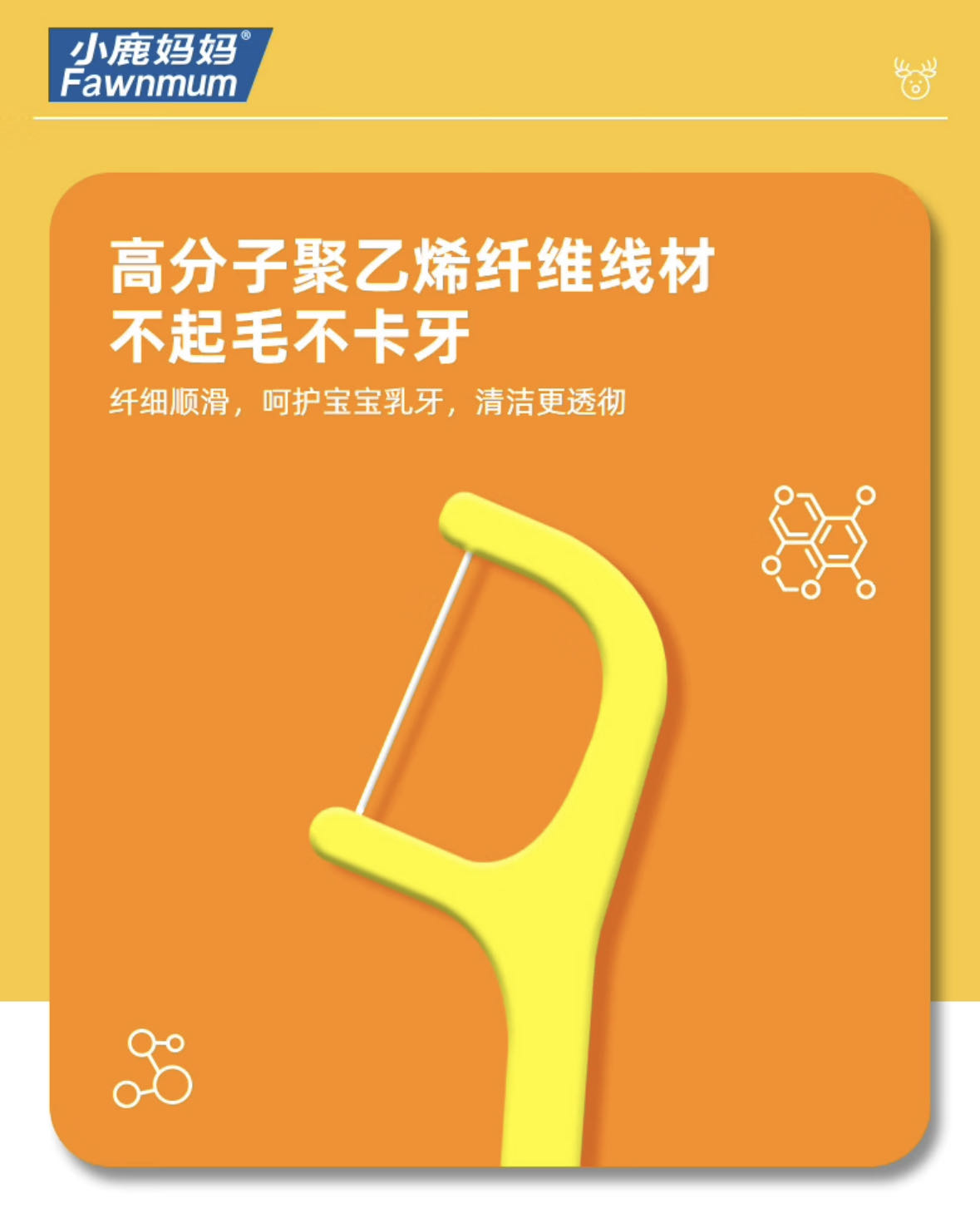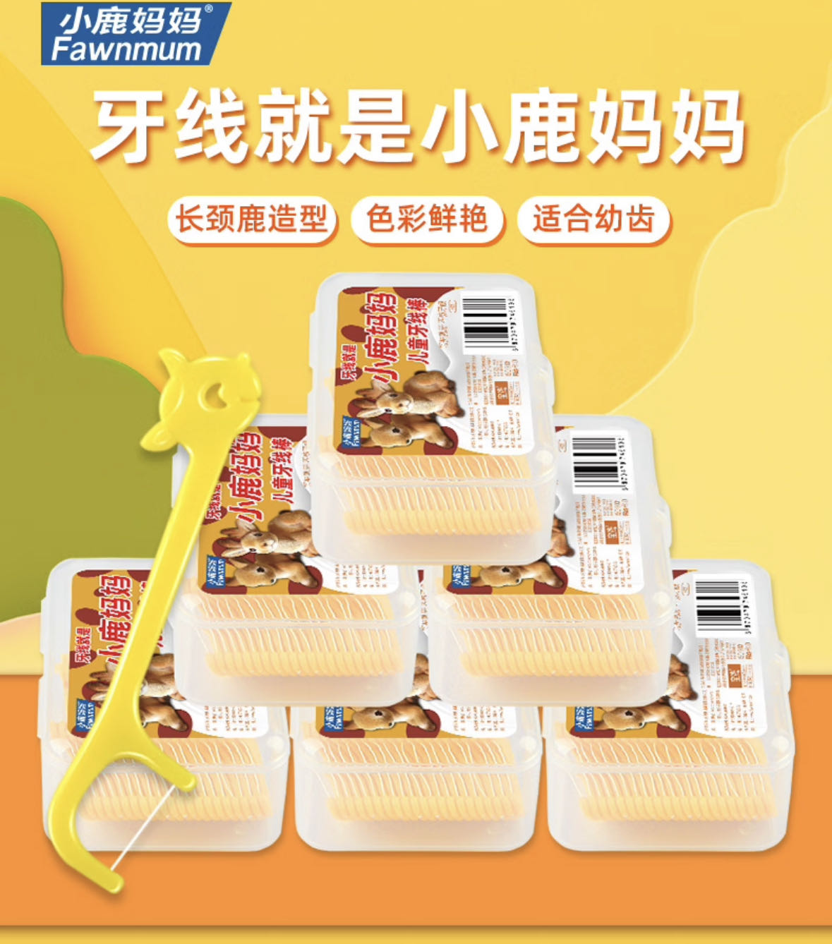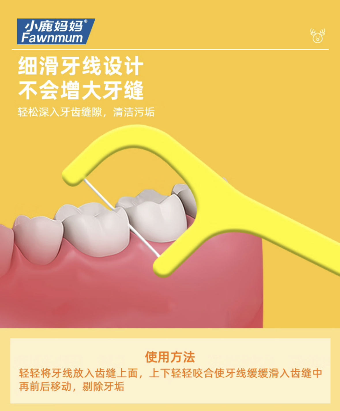 儿童牙线【黄鹿款】  小鹿妈妈儿童专用牙线 超细牙线棒