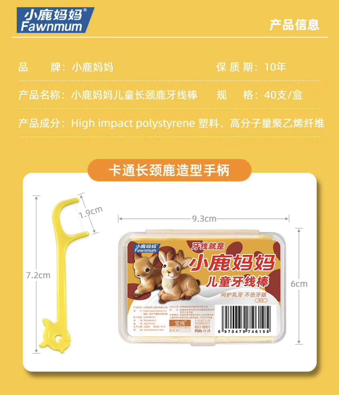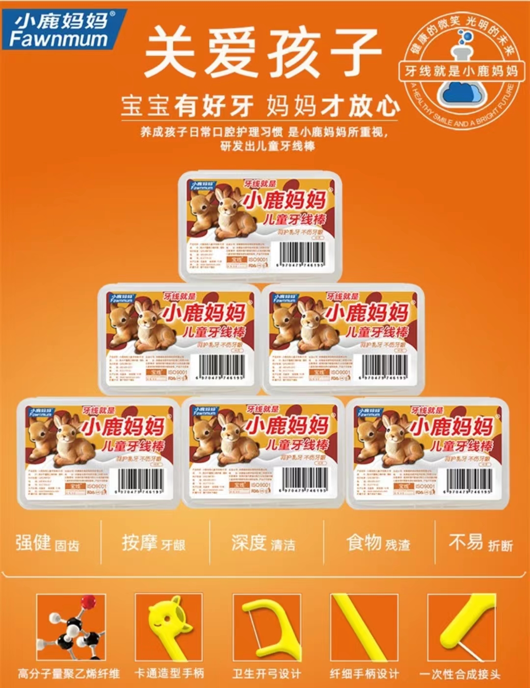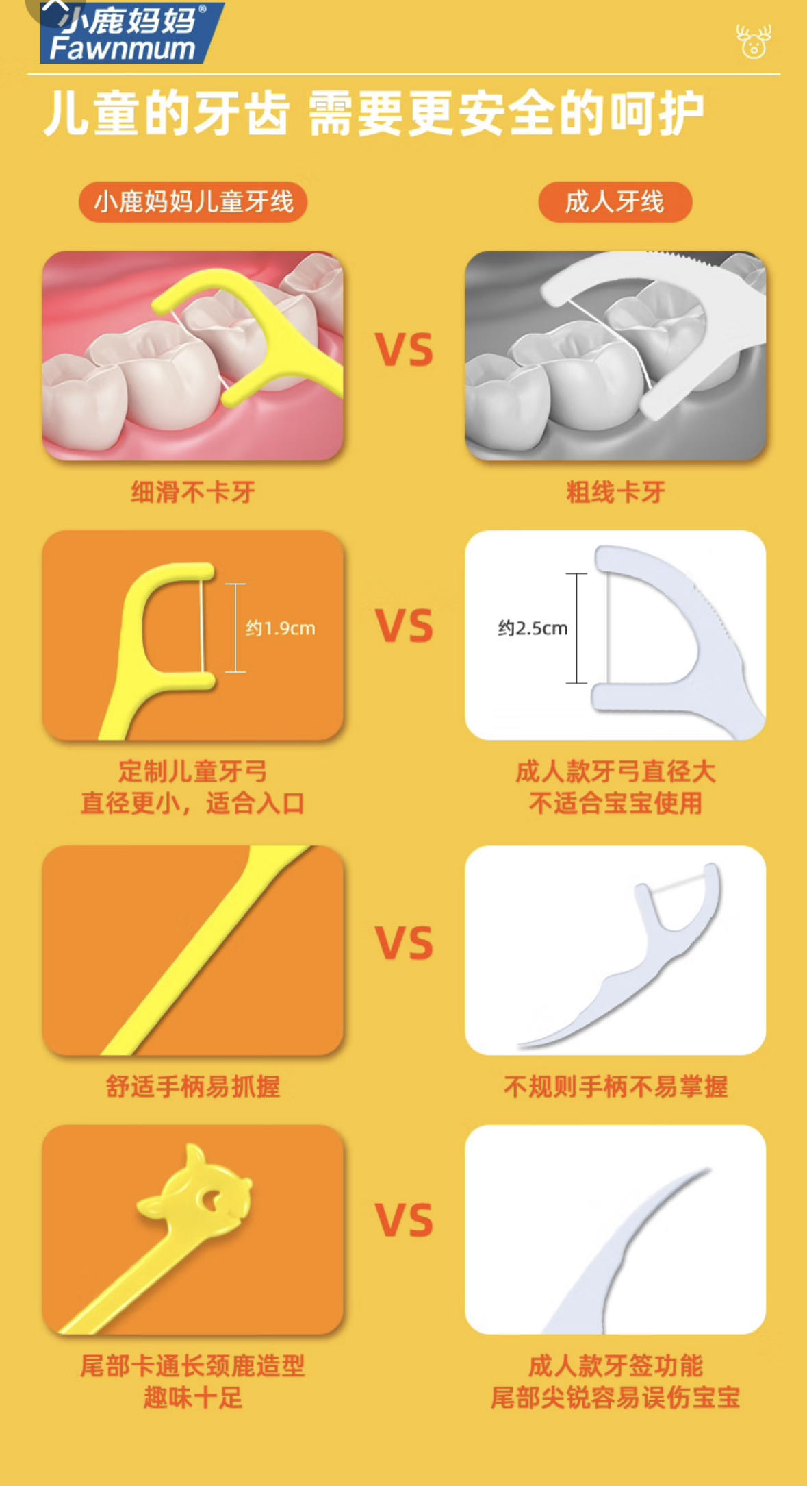 儿童牙线【黄鹿款】  小鹿妈妈儿童专用牙线 超细牙线棒